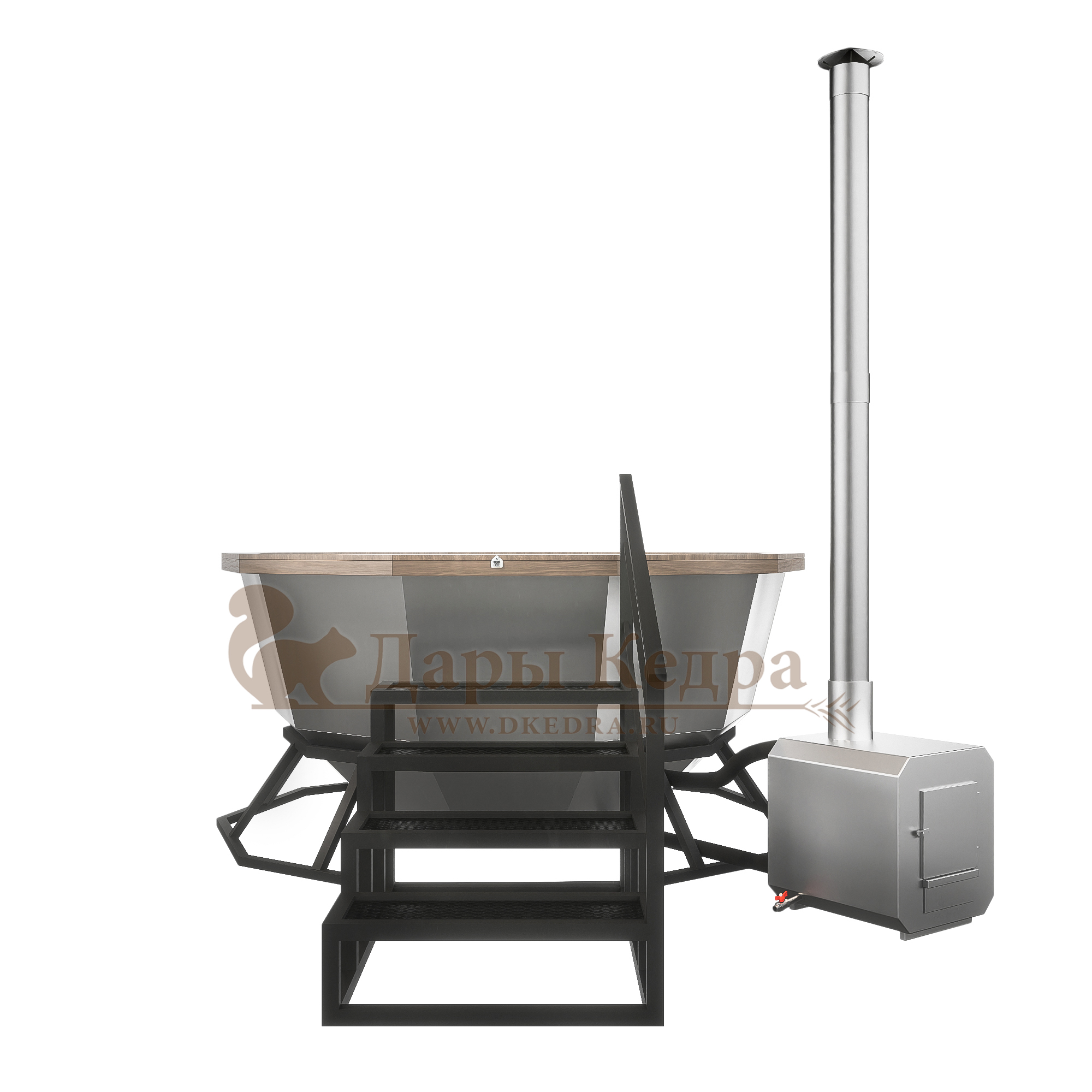 Конструкция устанавливается на прочную подставку, обеспечивающую устойчивость. Для удобства предусмотрена лестница, ведущая внутрь чана. Внутри оборудованы удобные сиденья, позволяющие комфортно расположиться. В зависимости от модели, вместимость составляет от 5 до 10 человек — отличный вариант для семьи или компании.