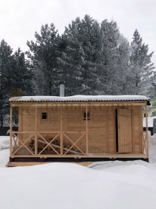 Разборный вид требуется при невозможности установить готовую баню на участке или в случае невозможной погрузки готового изделия в грузовой автомобиль.