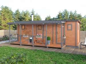 Каркасно-щитовая баня из кедра «Мега» с верандой