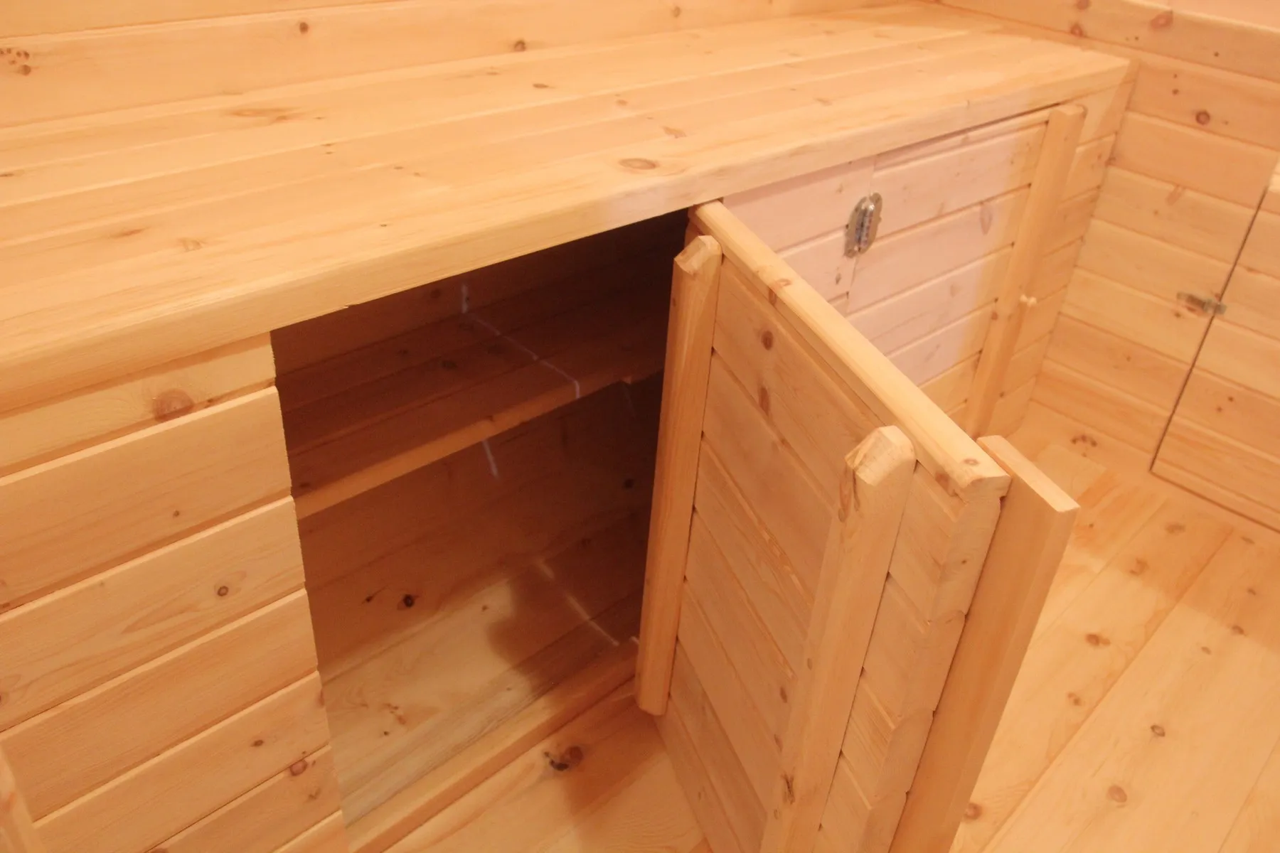 Столик в раздевалке будет удобен при длительном пребывании в бане.